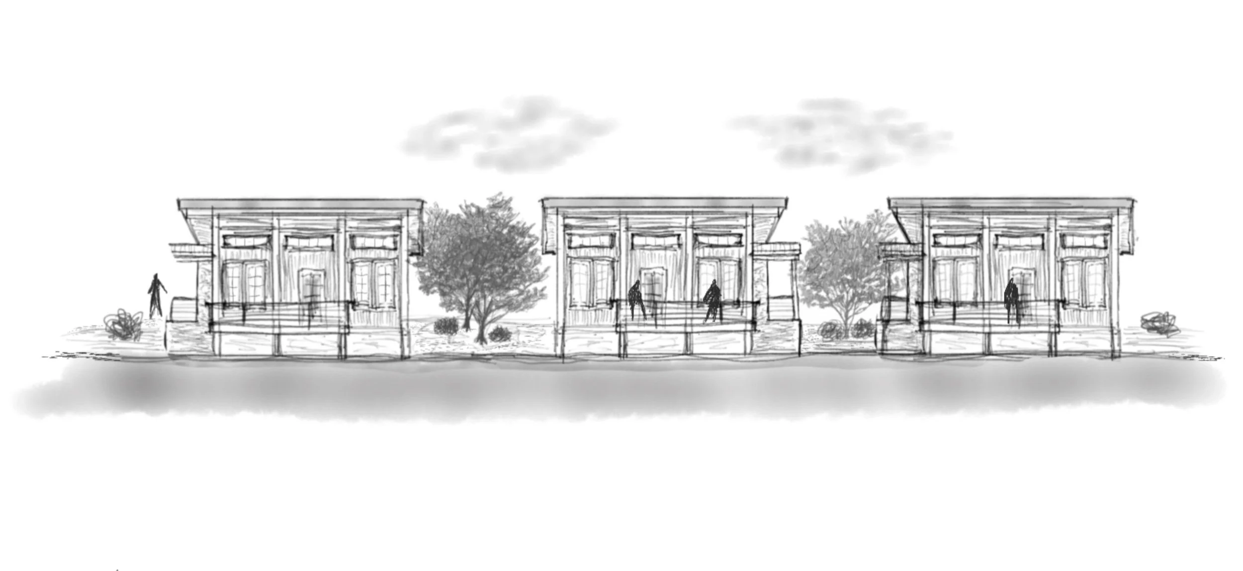 Nested in the middle of the woods along the shore of Athens College of Minister’s private campus lake, these 12 cabins were designed to house 4 individuals each. The main challenge was to keep the footprint of the cabin small, while still creating a spacious floor plan that drew a clear connection to the lake and nature. These prayer cabins each contain an open floor plan full kitchen, dining, and living room, two bedroom, two bathrooms and a utility closet. Taking into consideration the faith and values of the college, a mono-slope roof was a main design element. This created a viewing window wall with a deck overlooking the natural woods and lake on one end, and a displaying wall for a Bible verse as the cabin number. Natural materials such as wood siding, timber beams and natural stone were used as a way of allowing the building to complement its natural environment. These cabins will be used for students during the semester and ministry retreat prayer cabins in the summer months.